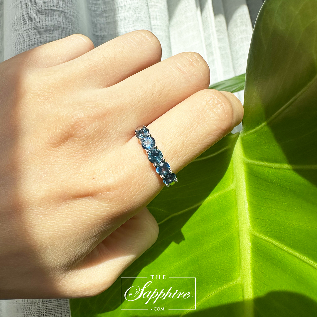 This 5 Stone Wedding Band is so beautiful well matched 5 Blue Montana Sapphires with Platinum mounting!