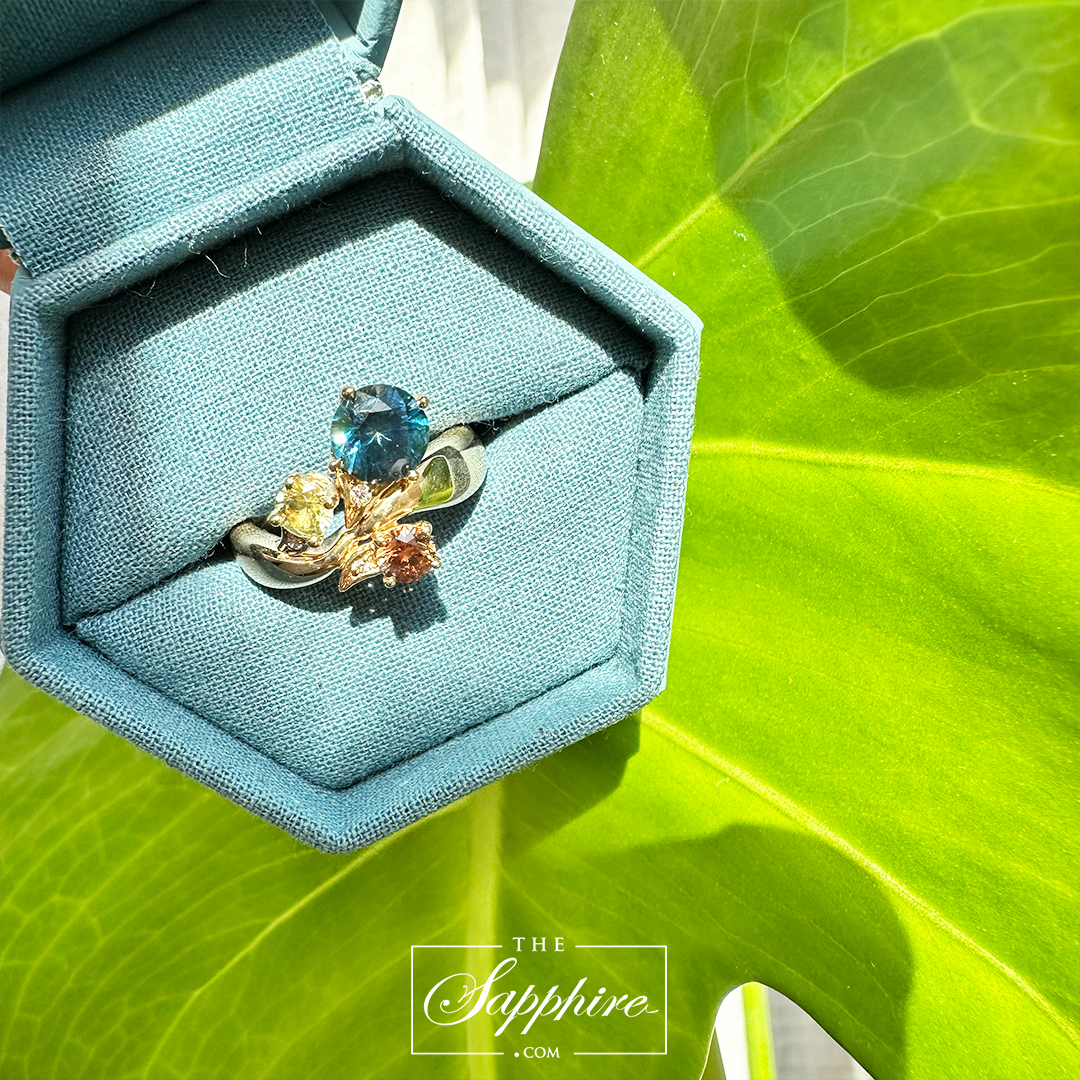 Side Stone1 : 1-Orange 0.31 Ct. M Sapphire Round 4.0 mm, 1-Yellow Green 0.30 Ct. M Sapphire Round 4.0 mm.